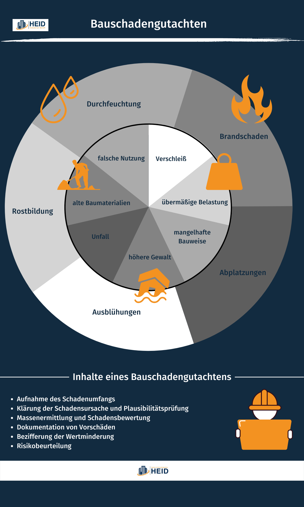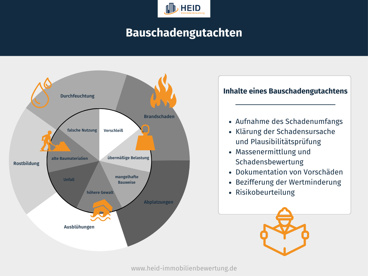 Die folgenden Inhalte enthält Ihr Bauschadengutachten, das die Sachverständigen der Heid Immobilien GmbH erstellen: