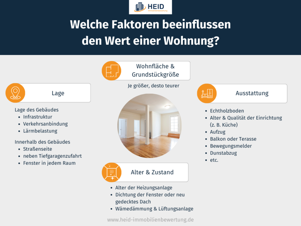 Zu den wichtigsten Faktoren bei der Wertermittlung einer Wohnung zählen: