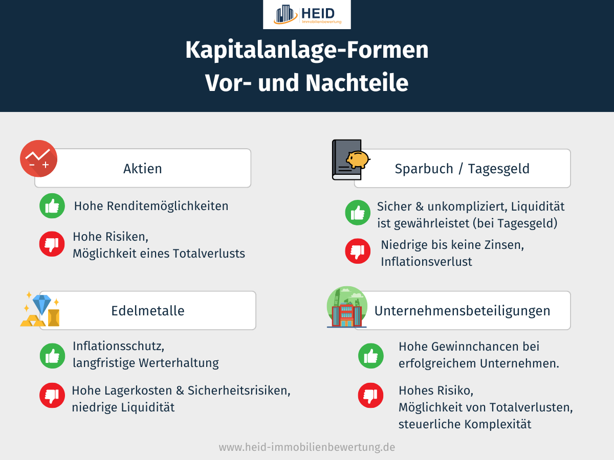 - Vermietete Immobilien sind anderen Anlageformen wie Aktien, Fonds, Edelmetallen, Unternehmensbeteiligungen oder dem Sparbuch überlegen.