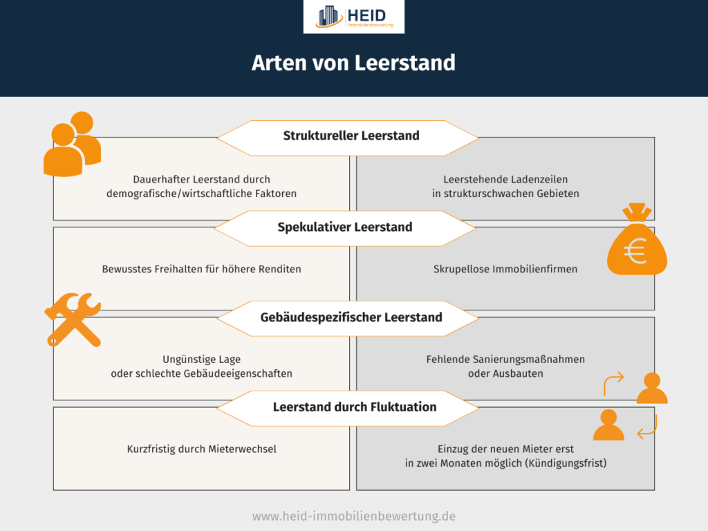 - Wir unterscheiden vier unterschiedliche Arten von Leerstand: strukturell, spekulativ, gebäudespezifisch sowie Leerstand durch Fluktuation.
