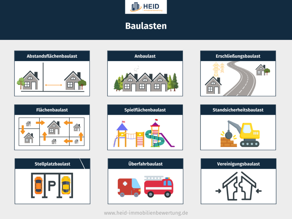 Es gibt verschiedene Arten von Baulasten, unter anderem die folgenden: