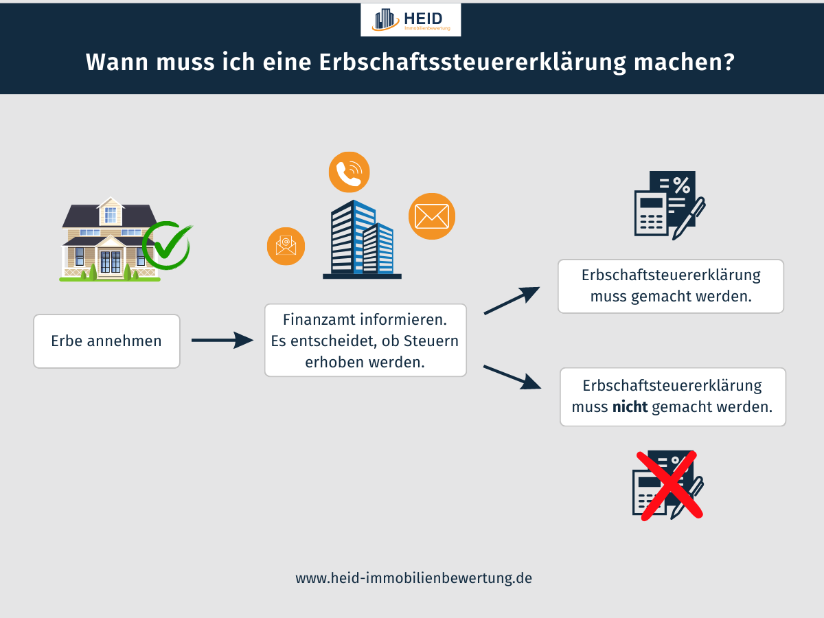 Eine Erbschaft – ganz gleich, ob Sie eine Immobilie erben, ein Unternehmen oder anderes Vermögen – müssen Sie dem Finanzamt laut § 30 ErbStG innerhalb von drei Monaten mitteilen. Ist ein Testamentsvollstrecker oder ein Nachlassverwalter bestellt, so kümmert er sich um die Steuererklärung.