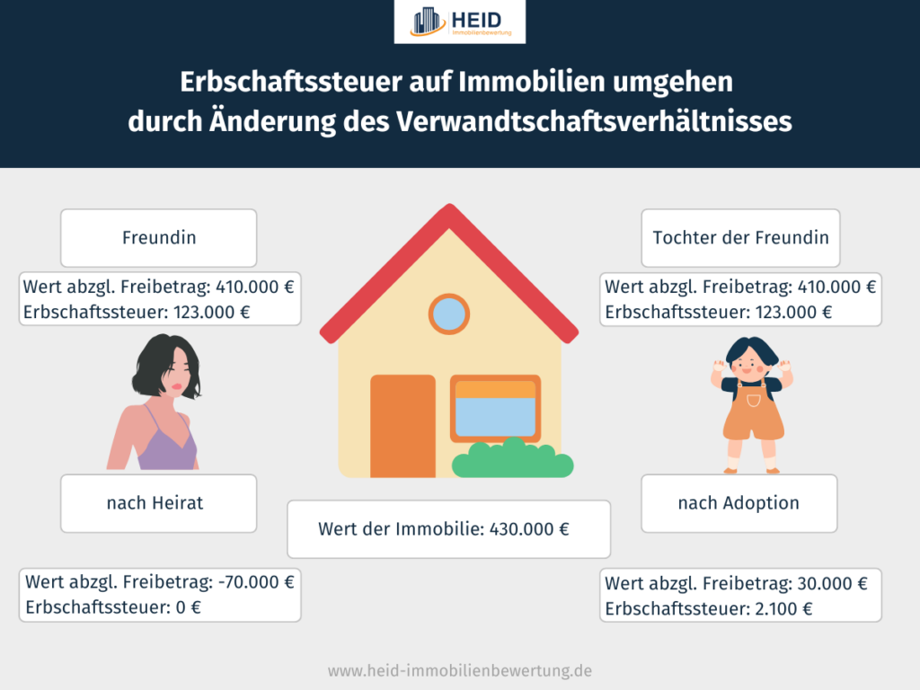 - Da das Vererben von Immobilien an Kinder eine Erleichterung der Steuerlast herbeiführen kann, ist eine Adoption ebenfalls eine gute Möglichkeit. Indem der Erblasser eine nahestehende Person adoptiert, ändern sich für diese die Verhältnisse im Erbfall: Sie steigt als Adoptivkind in die Erbschaftssteuerklasse I auf und erhält 400.000 € Freibetrag.