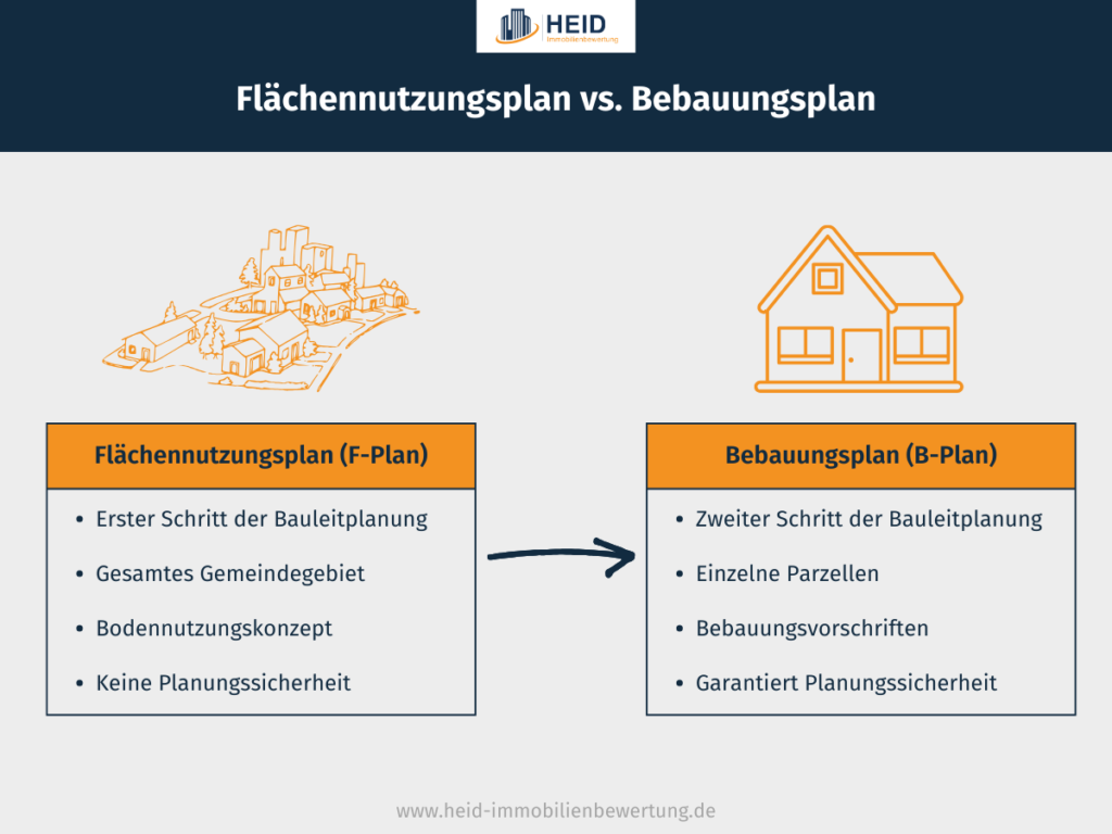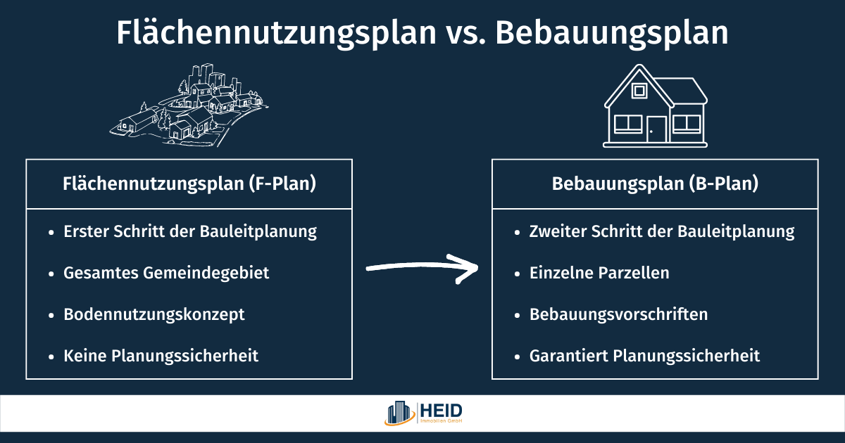 Innerhalb des zweistufigen Systems der Bauleitplanung geht der Flächennutzungsplan dem Bebauungsplan als vorbereitender Schritt voraus.