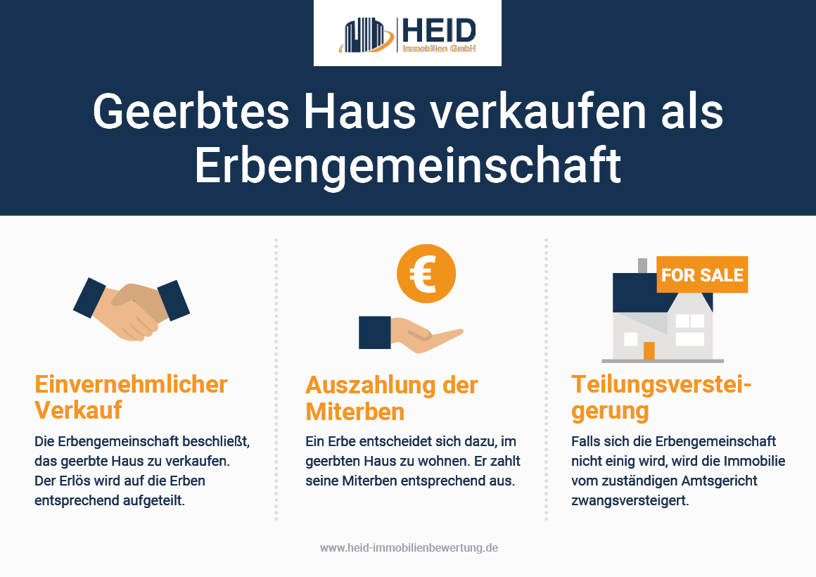 Die einfachste Lösung ist der einvernehmliche Verkauf. Die Erbengemeinschaft entschließt sich dazu, die Immobilie zu verkaufen. Der Erlös wird entsprechend aufgeteilt.