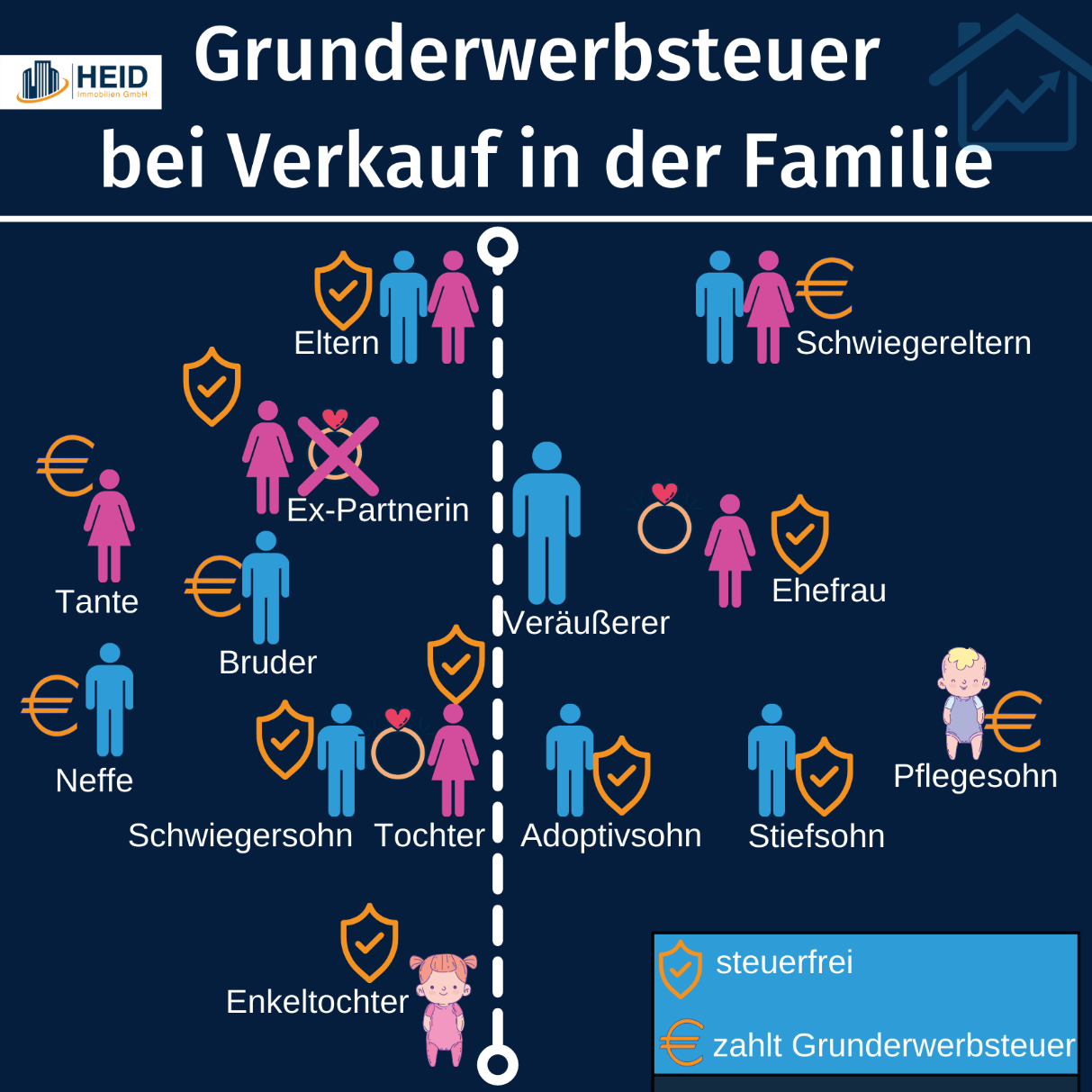 - Verkauf an (ehemalige) Ehegatten, Lebenspartner, Kinder und Stiefkinder (zum Beispiel bei einer Scheidung),
