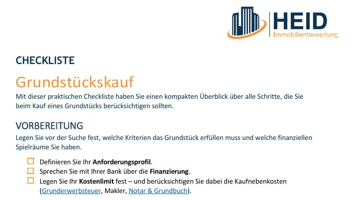 Checkliste für den Grundstückskauf: Das Wichtigste kompakt als pdf