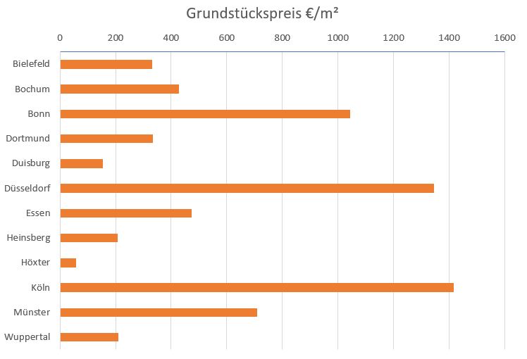 Die Projektentwickler der Immonowa UG haben die durchschnittlichen Grundstückspreise von Bayern bis Schleswig-Holstein ermittelt und auf aktuelle-grundstueckspreise.de publiziert. Datengrundlage sind Kaufpreise von rund 80.000 Grundstücken in den vergangenen 12 Monaten, die Mehrheit davon ohne Baugenehmigung. Das sind regionale Anhaltspunkte – der Marktwert Ihres Grundstücks kann weit darüber oder darunter liegen.