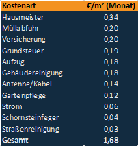 Hausgeld-Tabelle: Schätzung der Kosten, die nicht vom Verbrauch des Mieters abhängig sind.