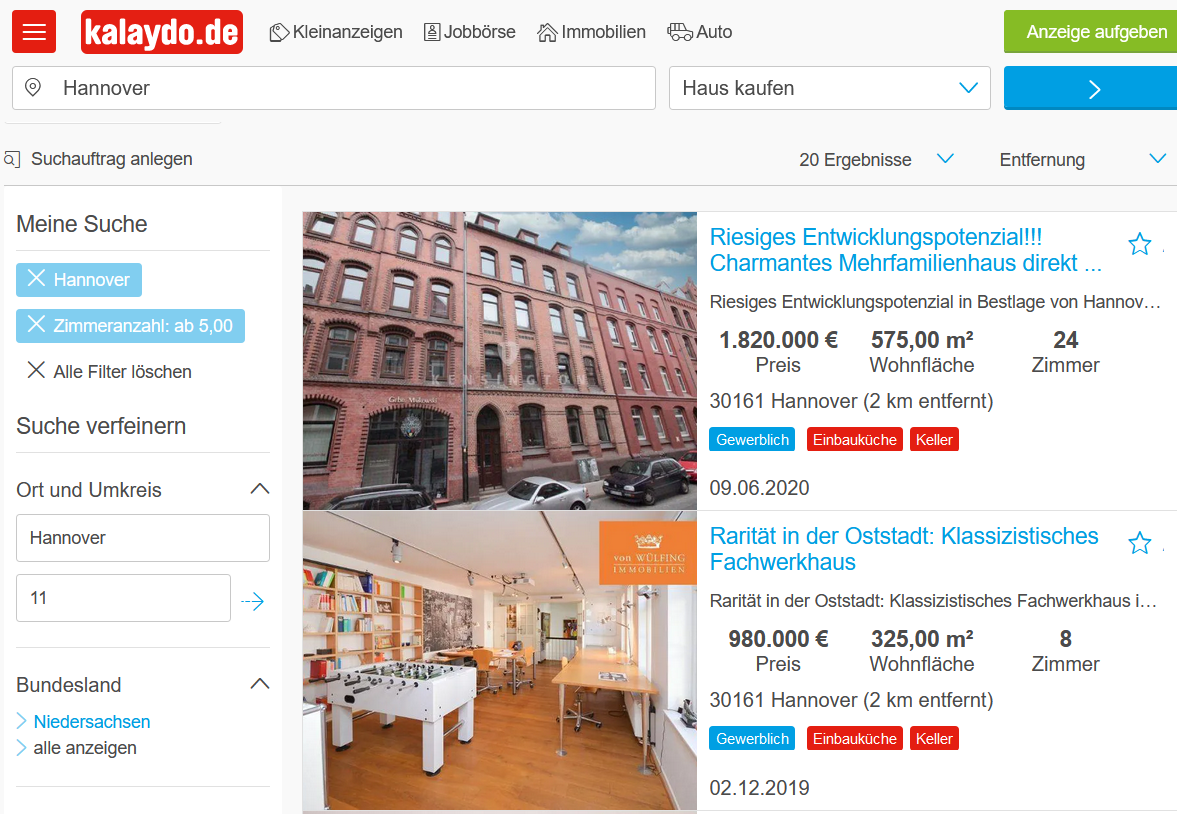 Auch auf Kleinanzeigen.de (vormals ebay Kleinanzeigen) wechseln Immobilien den Eigentümer. Mehr als eine halbe Million Immobilien suchen über das Kleinanzeigenportal einen neuen Besitzer oder Eigentümer. In ungefähr einem Zehntel der Inserate geht ums Gewerbeimmobilie verkaufen oder vermieten.