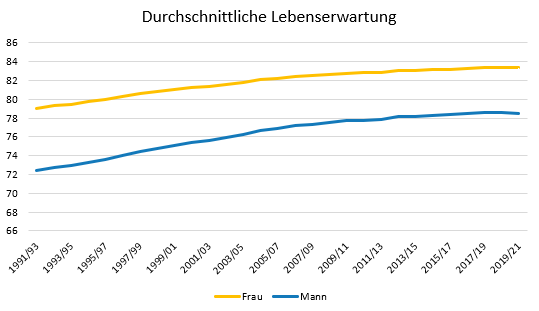 Generell ist zu beobachten, dass die durchschnittliche Lebenserwartung der Menschheit stetig zunimmt: