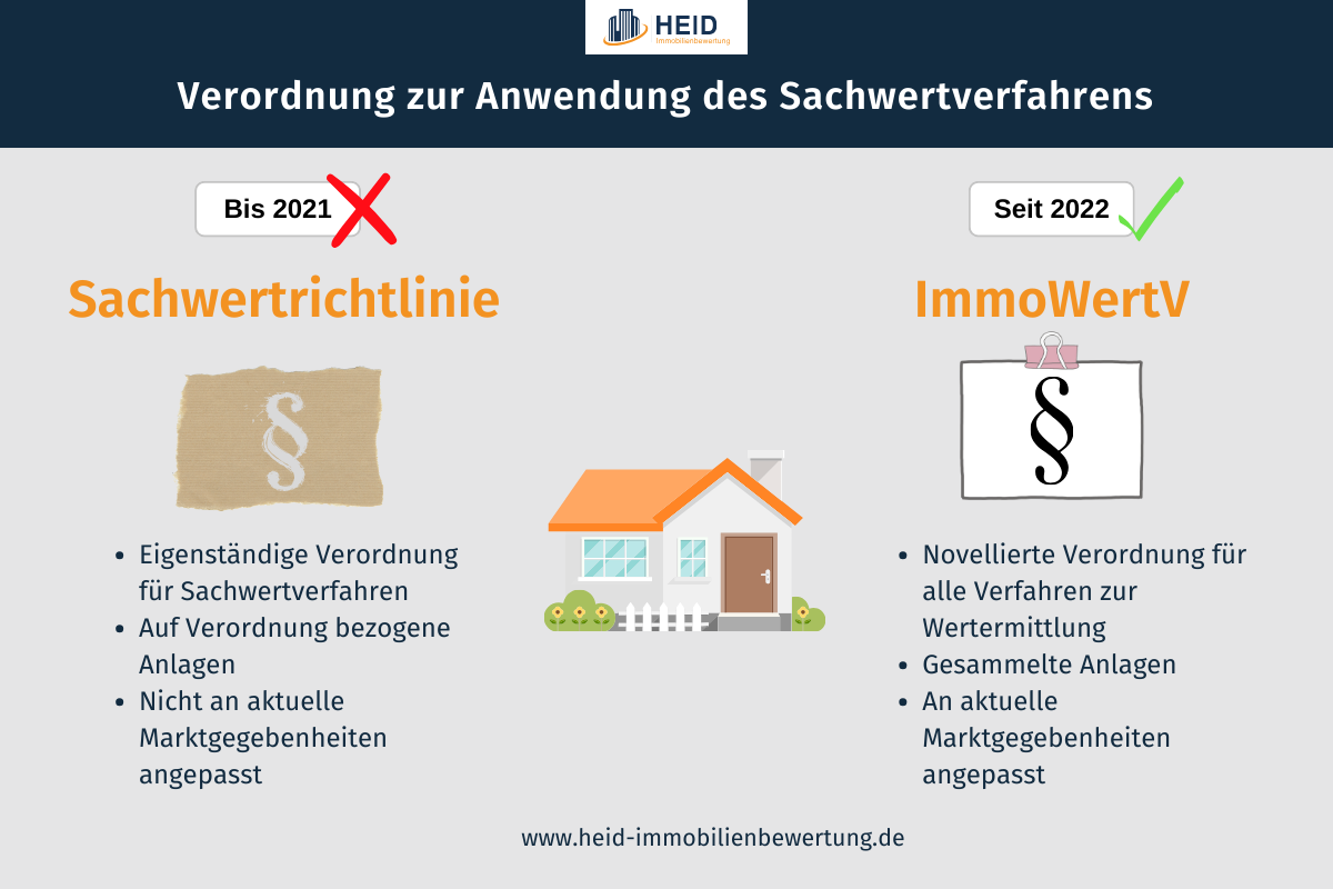 - Von 2012 bis Ende 2021 wurde die korrekte Anwendung des Sachwertverfahrens in der Sachwertrichtlinie festgelegt.