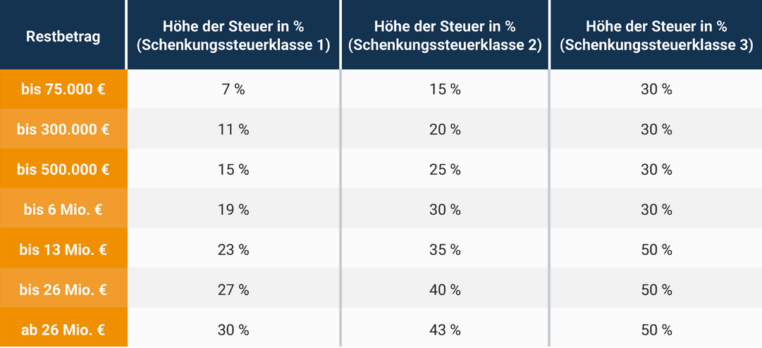 Wieso 15 Prozent, fragen Sie sich? Schenkungssteuerklassen sind nicht gleichbedeutend mit Lohnsteuerklassen. (Auch volljährige) Kinder haben stets Schenkungssteuerklasse 1.