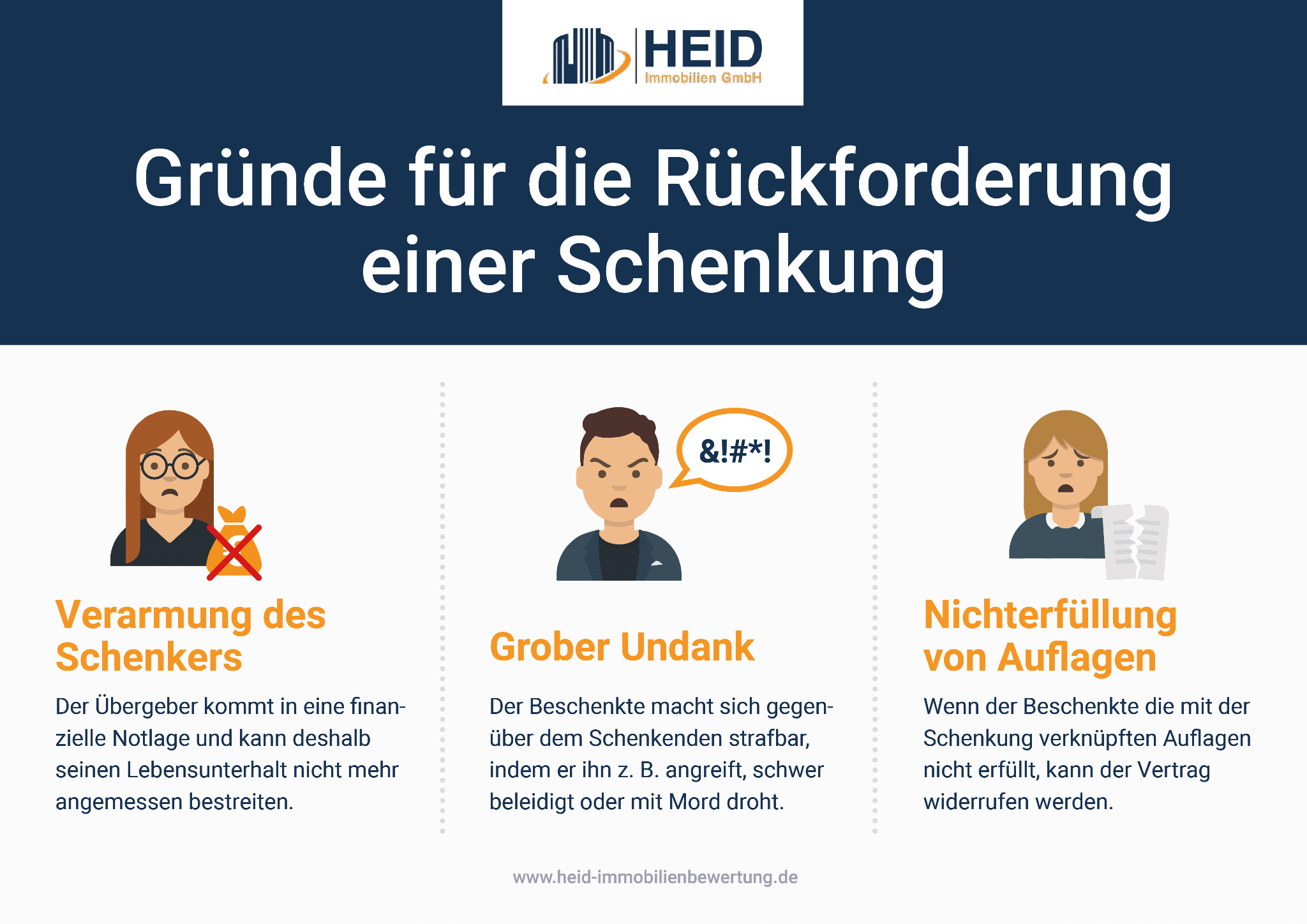 Zwar ist ein Schenkungsvertrag für eine Immobilie bzw. ein Grundstück rechtlich bindend, aber nicht unwiderruflich. Diese gesetzlichen Rückforderungsrechte gibt es:
