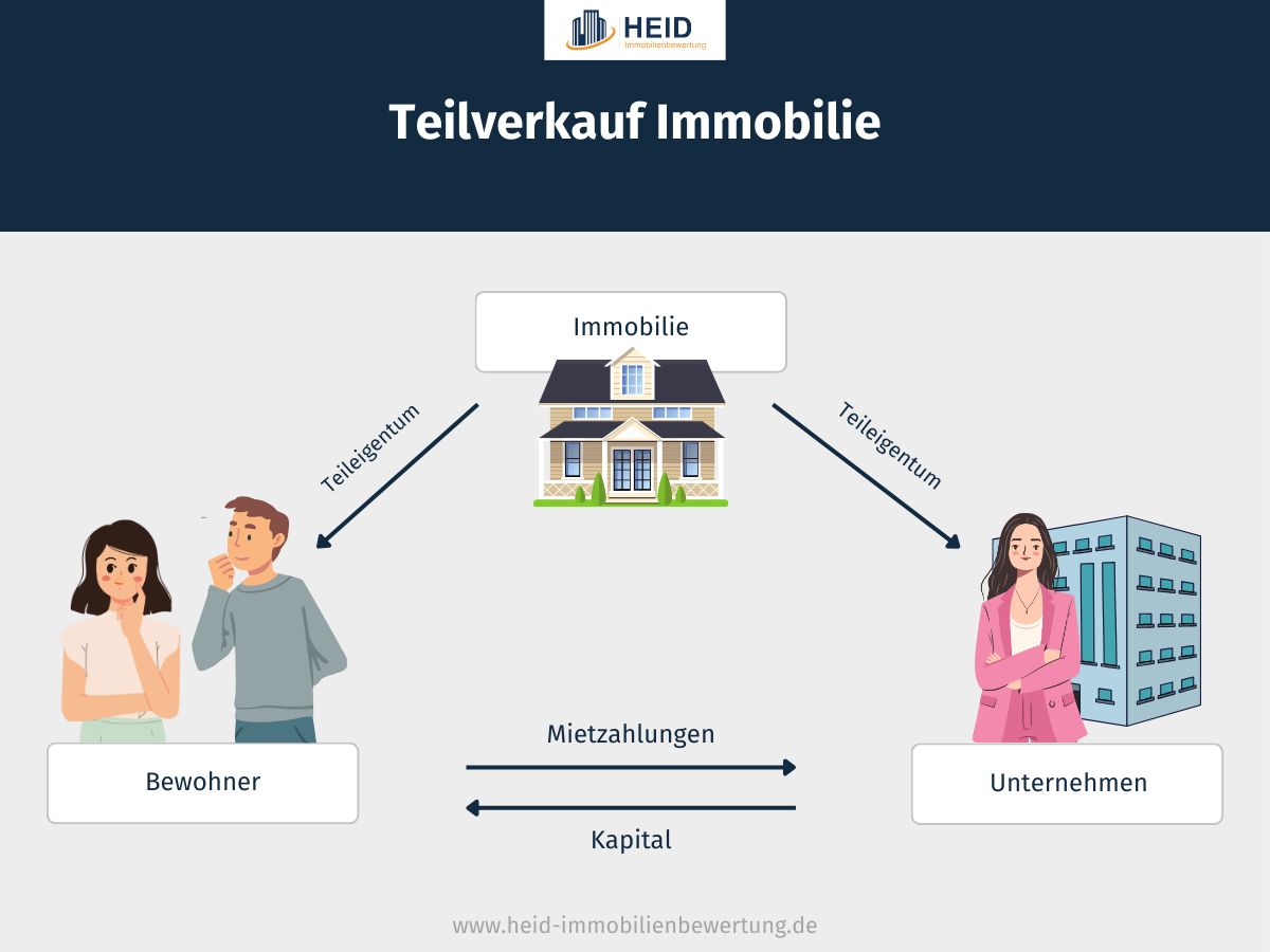 - Bei einem Haus-Teilverkauf treten Sie einen bestimmten Prozentsatz an Ihrer Immobilie an einen Kapitalgeber ab, der Ihnen dafür eine sechsstellige Summe überweist.