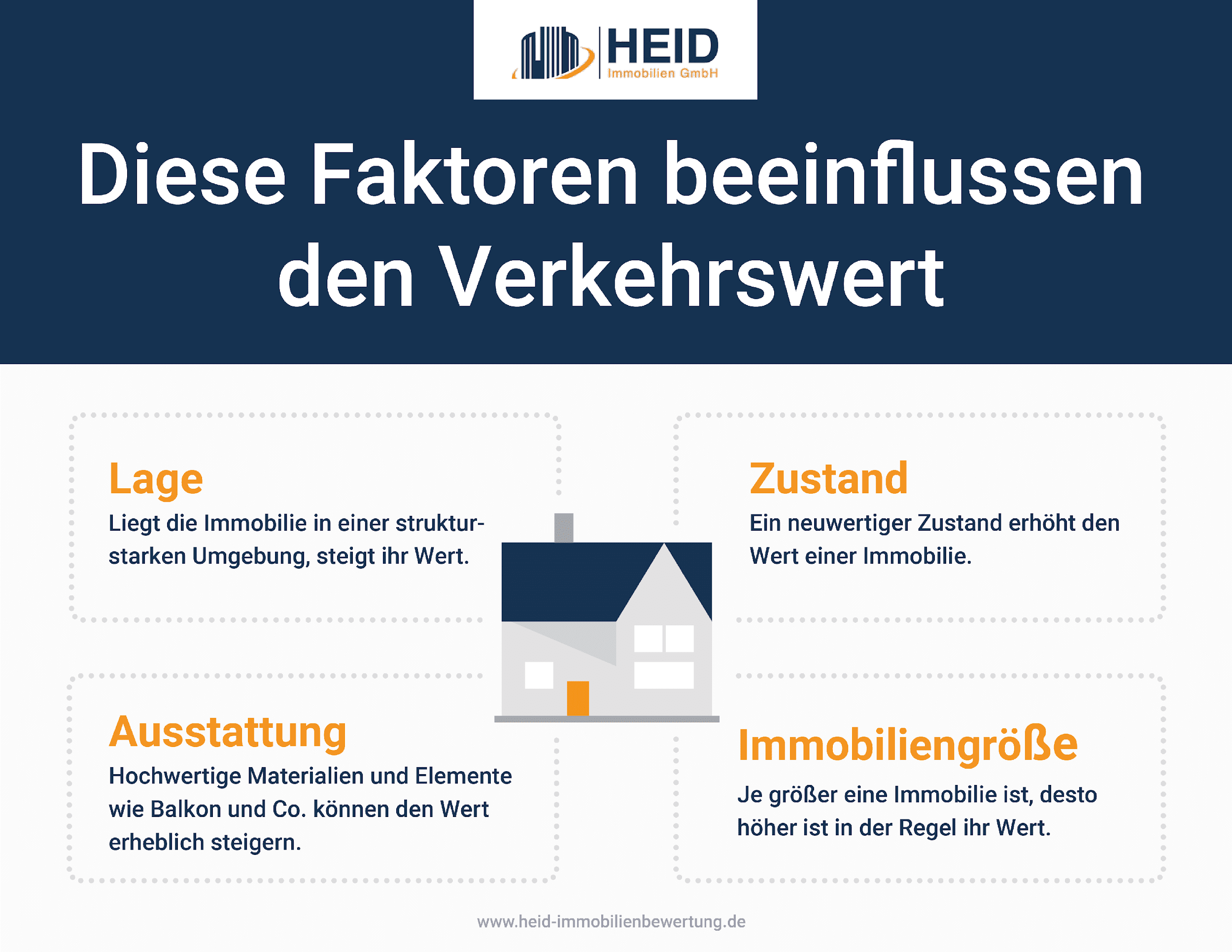 Wichtige Punkte, die über den Verkehrswert eines Hauses bestimmen, sind unter anderem: